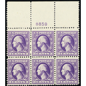 530, Mint NH 3¢ Top Plate Block of Six Stamps - Stuart Katz