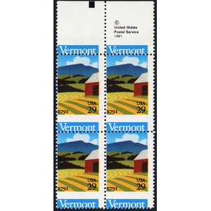 2533, MNH Vermont 29¢ Perfs Shifted Freaky Error Block * Stuart Katz