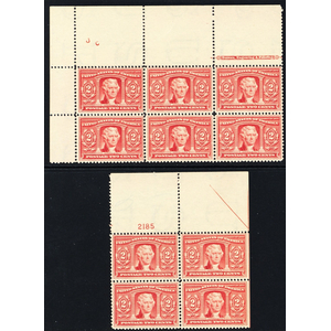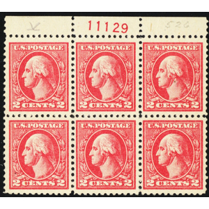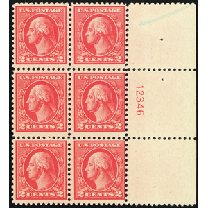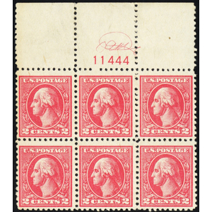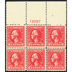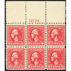 527, Mint VF NH 2¢ Top Plate Block of Six * Stuart Katz
