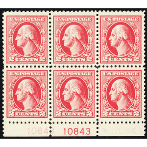 526, Mint VF NH 2¢ Plate Block of Six - Ghost PL#'s * Stuart Katz