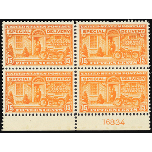 E13, Mint VF NH 15¢ Block of Four With PL# CV $300.00 * Stuart Katz