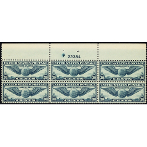 C24, Mint VF NH 30¢ (Minor perf seps) Plate Block of Six CV $110 * Stuart Katz