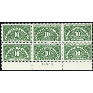 QE1a, Mint VF NH 10¢ Dry Printing Plate Block of Six CV $125 * Stuart Katz
