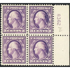 502, Mint FVF NH (2 LH) 3¢ Block of Four Stamps CV $79.00 - Stuart Katz
