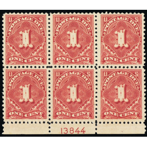 J61, Mint VF NH 1¢ Scarce Block of Six Stamps - Stuart Katz