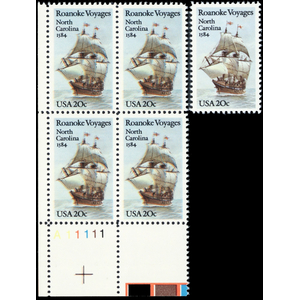 2093, MNH 20¢ Color Shifted Error Plate Block - Roanoke Voyages - Stuart Katz