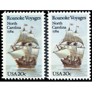 2093, MNH 20¢ Color Shifted Error With Normal - Roanoke Voyages - Stuart Katz