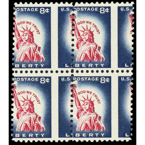 1042, Mint NH 8¢ Misperforation Error Block of Four Liberty Stamps - Stuart Katz