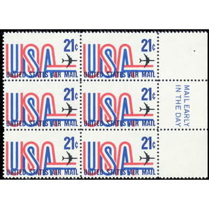 C81, Mint NH 21¢ Color Shifted Error Mail Early Block of Six - Stuart Katz
