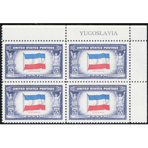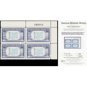 917A, Mint VF NH - Reverse Printing of Flag Colors Name Block Error Stuart Katz