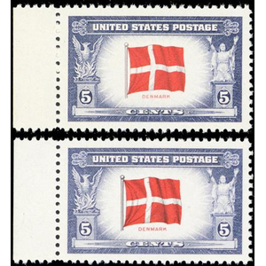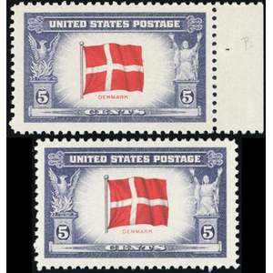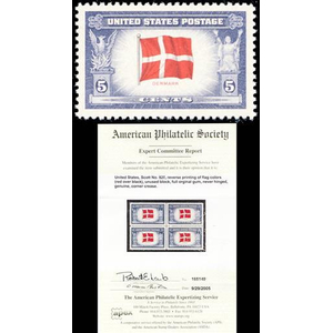 920a, MNH 5¢ Denmark Reverse Printing of Flag Colors With APS Cert - Stuart Katz