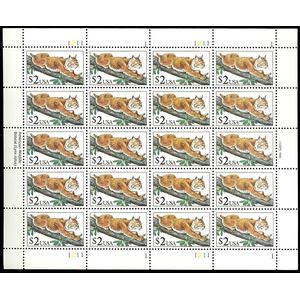 Scott 2482 $2 Bobcat Full Sheet of 20 Stamps Mint NH - Stuart Katz