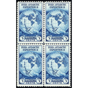753, Unused VF 3¢ Byrd Center Line Block Of Four Stamps -- Stuart Katz