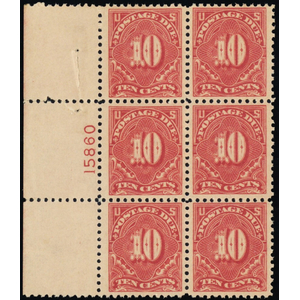 J65, Mint VF NH RARE 10¢ Plate Block of Six * Stuart Katz