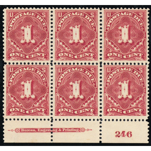 J38, Mint XXLH VF RARE 1¢ Plate Block of Six * Stuart Katz