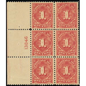 J45, Mint H/NH RARE 1¢ Plate Block of Six SCV $575 * Stuart Katz