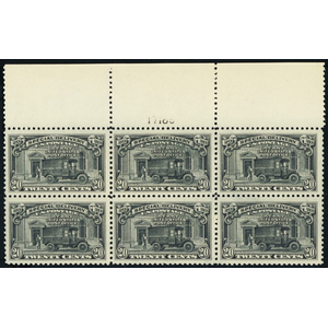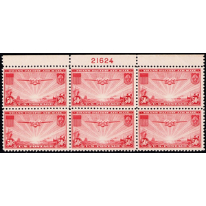 C22, Mint FVF NH Top Plate Block of Six Stamps CV $85 - Stuart Katz