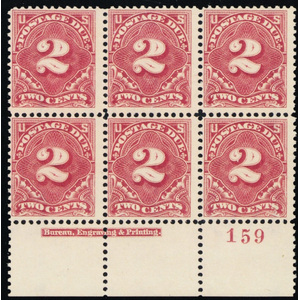 J39, Mint NH RARE 2¢ Plate Block of Six SCV $450 * Stuart Katz