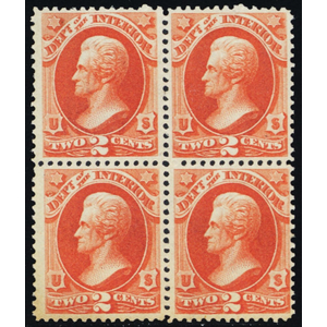 O16, Mint LH/NH 2¢ Interior Official Block SCV $470.00 - Stuart Katz