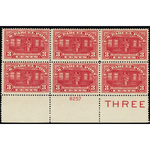 Q3, Mint (1 stamp hr) 3¢ Plate Block of Six SCV $250.00 * Stuart Katz