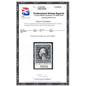 430, Mint VF/XF NH 7¢ With PL# With PSE Certificate - Stuart Katz