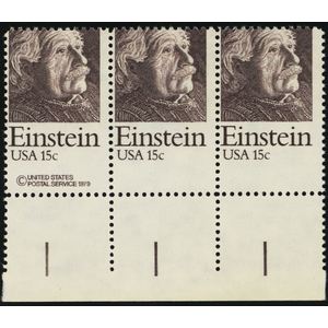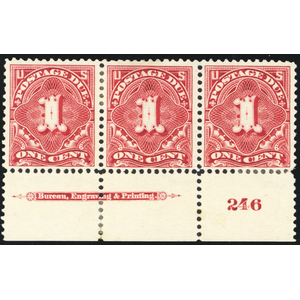 J38, Mint 1¢ HR PL# & Imprint Strip of Three - SCV $60.00 - Stuart Katz
