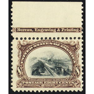 298, Mint LH 8¢ - Imprint at Top SCV $90 - Stuart Katz