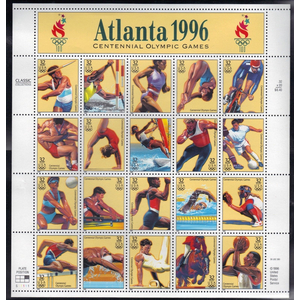 1996 Atlanta Summer Olympics Games Sheet of Twenty 32 Cent Stamps Scott 3068