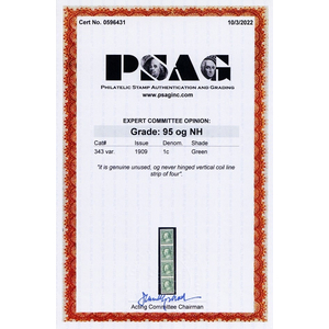 343v, Mint NH XF/S 1¢ Line Strip/4 With PSAG Certificate Graded 95 - Stuart Katz