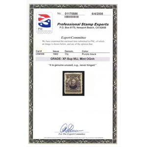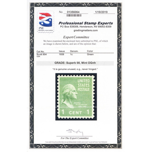 804, Mint NH 1¢ Superb - With Graded 98 PSE Certificate - Stuart Katz