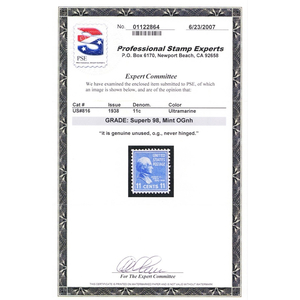 816, Mint NH 11¢ Superb - With Graded 98 PSE Certificate - Stuart Katz
