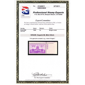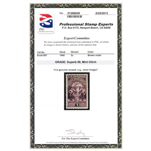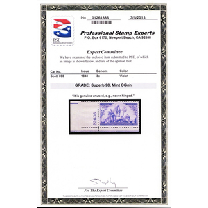 937, Mint NH 3¢ Superb - With PSE Graded 98 Certificate - Stuart Katz