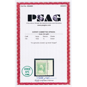 705, Mint NH 1¢ XF/Superb JUMBO - PSAG Graded 95J * Stuart Katz