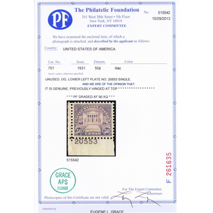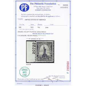 696, Mint XF NH 15¢ - PFC Certificate Graded 90 * Stuart Katz