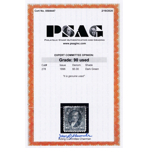 278, Used $5 XF Centering - With PSAG Graded 90 Certificate * Stuart Katz