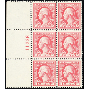 527, VF-XF NH 2¢ Left Side Plate Block of Six Stamps - Stuart Katz