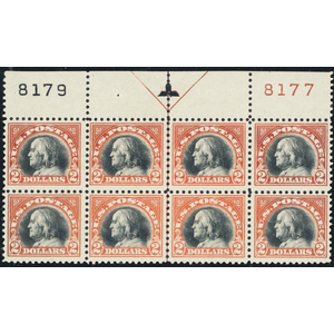 523, Mint VF VLH $2 RARE Plate Block of 8 PSE Cert CV $11,000 - Stuart Katz