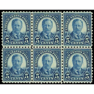 586, Mint 5c Block of six - VF/XF NH Very fresh! Cat $225.00+