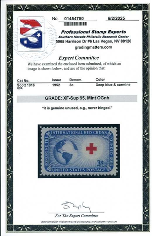 1016, Red Cross, Mint NH, PSE Graded XF-Sup 95 Certificate, SMQ$25