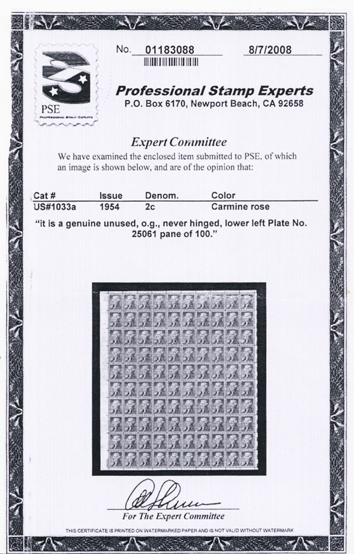 1033a, Mint VF NH 2¢ Silkote Paper - PSE Certificate - Stuart Katz