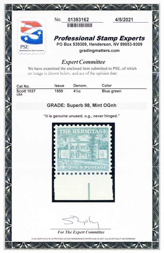 1037, Mint Superb NH 4-1/2¢ With PSE Graded 98 Certificate * Stuart Katz