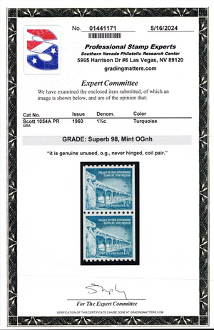 1054A, MNH Superb Coil Pair - PSE Graded 98 Certificate - Stuart Katz
