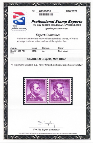 1058, MNH Superb Coil Pair - PSE Graded 98 Certificate - Stuart Katz
