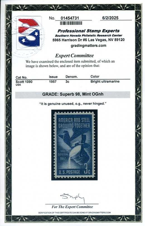 1090 Steel Centennial, Mint NH, PSE Graded Superb 98 Certificate, SMQ$65