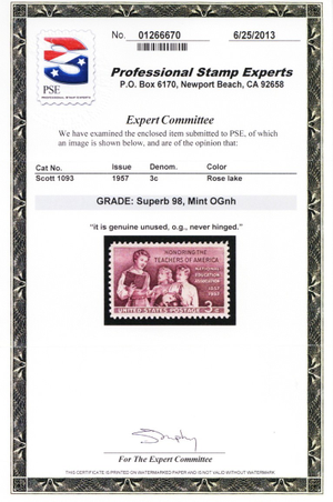 No refunds will be made after 60 days after the sale date unless extra time is granted. Due to the high cost of obtaining certificates we will only refund the cost of the stamp and not the cost of the certificate. For U.S. stamps only certificates from either APS, PSE or from the Philatelic Foundation are accepted, however "graded" certificates or "encased" items are not accepted.
