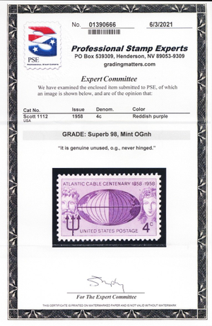 No refunds will be made after 60 days after the sale date unless extra time is granted. Due to the high cost of obtaining certificates we will only refund the cost of the stamp and not the cost of the certificate. For U.S. stamps only certificates from either APS, PSE or from the Philatelic Foundation are accepted, however "graded" certificates or "encased" items are not accepted.