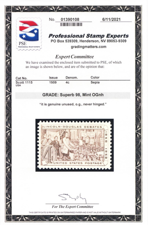 1115, Mint Superb NH 4¢ - PSE Graded 98 GEM * Stuart Katz