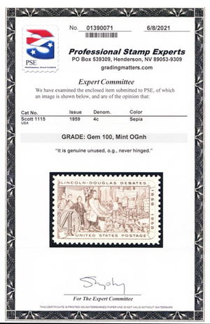 No refunds will be made after 60 days after the sale date unless extra time is granted. Due to the high cost of obtaining certificates we will only refund the cost of the stamp and not the cost of the certificate. For U.S. stamps only certificates from either APS, PSE or from the Philatelic Foundation are accepted, however "graded" certificates or "encased" items are not accepted.
