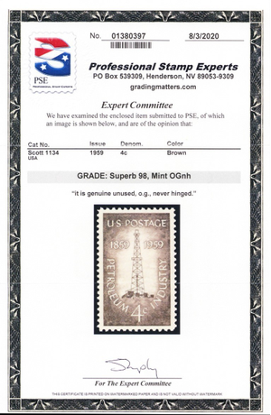 No refunds will be made after 60 days after the sale date unless extra time is granted. Due to the high cost of obtaining certificates we will only refund the cost of the stamp and not the cost of the certificate. For U.S. stamps only certificates from either APS, PSE or from the Philatelic Foundation are accepted, however "graded" certificates or "encased" items are not accepted.