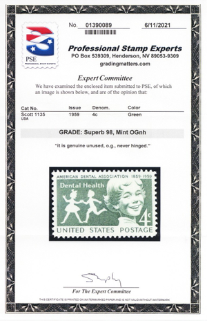 1135, Mint Superb NH 4¢ - PSE Graded 98 * Stuart Katz